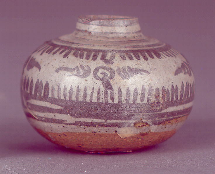 Sukhothaikeramik Aus dem Grundstoff, den man in der Provinz Sukhothai fand, konnte man einen sehr harten Scherben herstellen, ähnlich dem chinesischen Celadon. Die siamesischen Stücke unterscheiden sich jedoch erheblich von ihren Vorbildern. Die ersten Keramiken in der neuen Technik stammen wohl aus den Ban Ko Noi-Öfen unweit Chalieng. Bei der Sukhothaikeramik handelt es sich um eine graue, steinzeugartige, hochgebrannte Irdenware, auf der ein hellgrauer Tonanguss liegt. Über die Bemalung mit eisenschwarzem Tonschlicker wurde in fast gleicher Stärke wie der Anguss eine transparente, feincraquelierte Glasur gezogen. Charakteristisch sind die fünf Spuren der Brandstützen, die wir aus dem China der T'ang-Zeit kennen. Die Ware des 14./15. Jh. umfasst Schalen, flaschenförmige, kugelige und Vasen mit breiter Leibung und Öffnung. Das Dekor besteht aus Blütenranken, Fischmotiven, Wirbeln und Strichornamenten. Sukhothai war noch in Betrieb, als bereits in Sawankhalok gebrannt wurde. Da zu allen Jahrhunderten Chinesen nach Süden gewandert sind, kann man unterstellen, daß chinesische Töpfer im 14./15. Jh. die siamesische Keramik neu inspiriert haben. Sawankhalok Vom 14.Jh. bis zur Zerstörung durch die Burmesen 1767 bestand das Reich von Ayutthaya. Der Anfang der Sawankhalok-Keramik ist nicht belegt, getöpfert und gebrannt wurde rd. 150 Jahre lang. Weil der Königshof die neue, seladonartige Ware bevorzugt, setzt eine grössere Produktion ein. Sukhothai-Tradition wurde in der eisenschwarz bemalten Ware von Sawankhalok fortgesetzt, die auch in der San Kamphaeng-Keramik fortlebt. Sawankhalok ist vielfältig: Man bemalte mit Eisenbraunschwarz oder Unterglasurblau unter dünner, transparenter, nur leicht getrübter Glasur, verwendete braune oder grauweisse Glasur, schnitt Ornamente ein oder malte auf grauweissem Scherben mit brauner und seladonfarbener Glasur. Der Scherben ist oft rötlich und hochgebrannt, steinzeugartig. Unter den Formen finden wir Schalen mit beschnittenem Fuss, kugelige Vasen mit breiter, birnenförmige mit engem Hals und kleiner, trichterförmiger Öffnung, Vasen mit hochgezogener Eiform und kleinen Doppelhenkeln, Deckelgefässe mit und ohne Ösenhenkeln, Vasen in Kürbisform mit Ösenhenkeln, Deckeldosen und Kleinplastiken. Eine Sonderform ist das Kendi, eine flaschenartige Form. Auf der Leibung in gedrückter Kugelform sitzt ein Hals mit ausschwingendem Halsrand und etwas eingezogener Öffnung, auf der Schulter mammaartig ein Ausguss mit enger Öffnung auf. Das Kendi erscheint bereits auf einem Bild in Tufan, Name und Form sind indischen Ursprungs. Das ,kundika' oder ,kundi' war in buddhistischen Klöstern ebenso zu Hause wie die Almosenschale. Damit wurden den Mönchen Getränke eingeflösst, ohne dass sie das Gefäss berührten. Indisch-buddhistische Überlieferung prägte im China der T'ang-Zeit einen Formtyp, der in Siam aufgenommen wird und später über den Handel wieder in China erscheint. Die frei wuchernde, üppige florale Ornamentik in Sawankhalok, die sich völlig von der chinesischen und der des Islam unterscheidet, entspricht indischer Mentalität, hat allerdings über Zentral- und Südostasien die spätere chinesische Keramik wesentlich beeinflusst. Für Sawankhalok sind runde Säulenbrandstützen wie im China der Yuean- und Mingzeit bezeichnend.